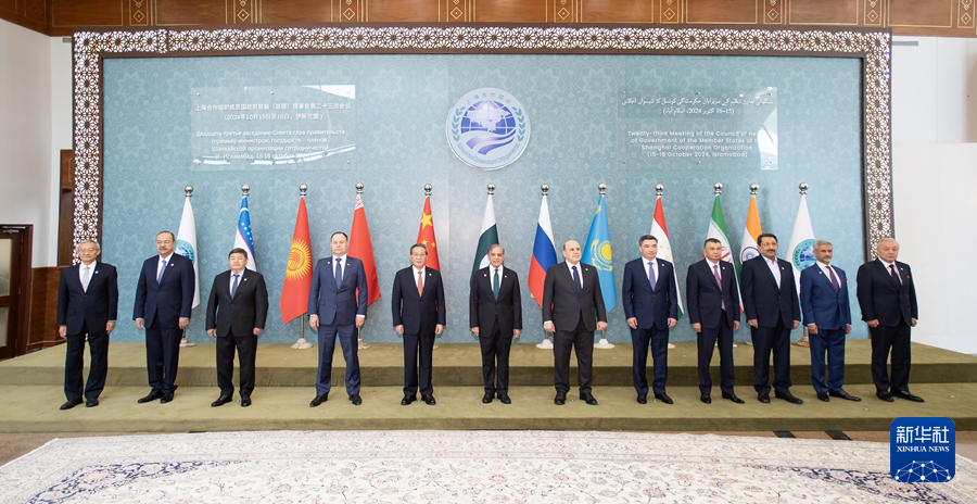 當(dāng)?shù)貢r間10月16日,國務(wù)院總理李強(qiáng)在伊斯蘭堡出席上海合作組織成員國政府首腦(總理)理事會第二十三次會議。白俄羅斯總理戈洛夫琴科、哈薩克斯坦總理別克捷諾夫、吉爾吉斯斯坦總理扎帕羅夫、俄羅斯總理米舒斯京、塔吉克斯坦總理拉蘇爾佐達(dá)、烏茲別克斯坦總理阿里波夫、印度外長蘇杰生、伊朗工業(yè)礦業(yè)和貿(mào)易部長阿塔巴克以及觀察員國蒙古國總理奧云額爾登、會議主辦國客人土庫曼斯坦副總理兼外長梅列多夫與會,巴基斯坦總理夏巴茲主持會議。